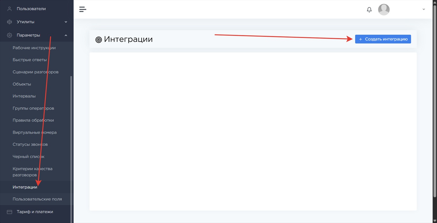 Откройте Параметры → Интеграции и нажмите Создать интеграцию.