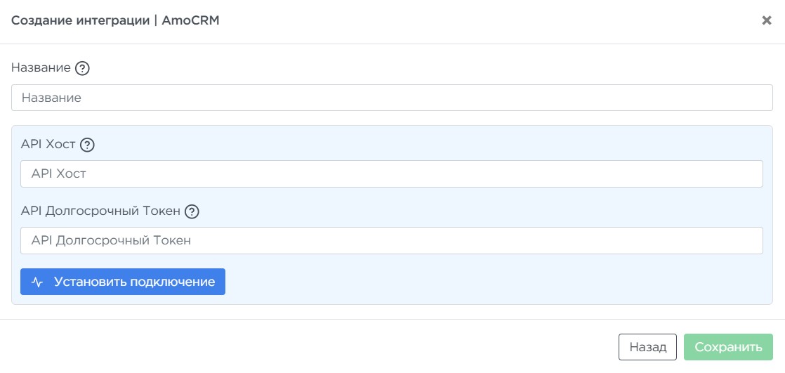 После установки подключения подтянутся актуальные данные из AmoCRM и появится возможность отредактировать настройки: