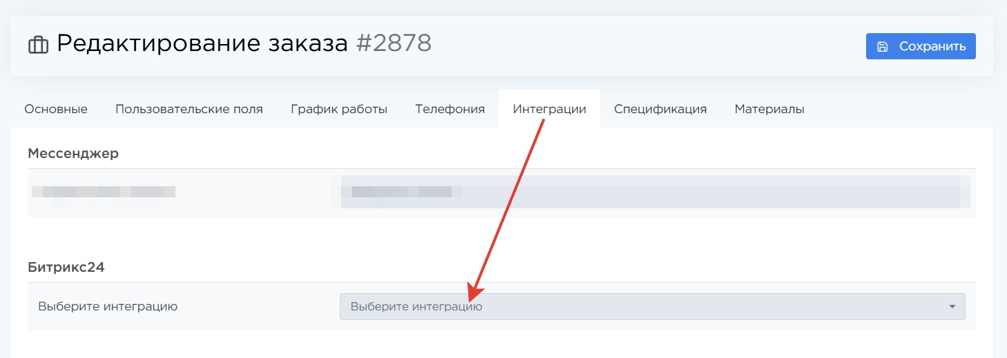 Откройте нужный заказ → Редактировать → вкладка Интеграции.