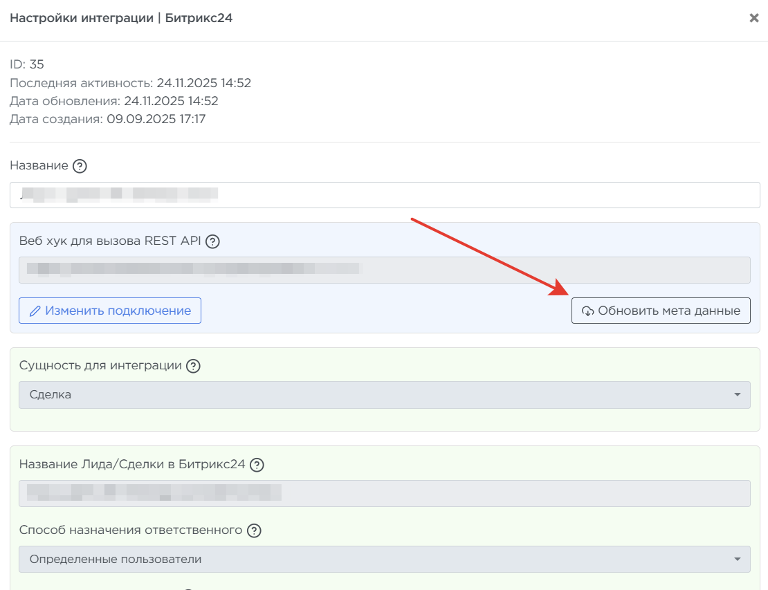 После установки подключения подтянутся актуальные данные из Битрик24 и появится возможность отредактировать настройки: