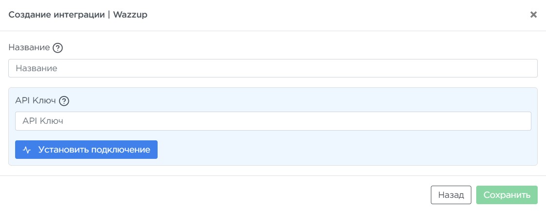 API-ключ, полученный в личном кабинете Wazzup (см. 👉 официальную инструкцию Wazzup).