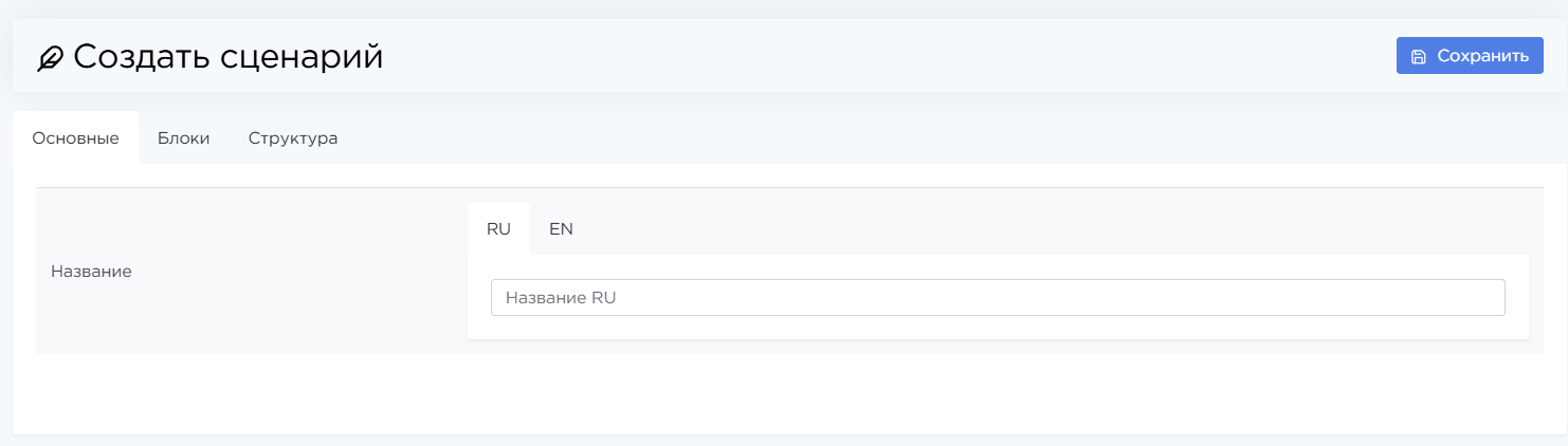 Для создания нового сценария используйте кнопку Создать сценарий. Подробнее о создании сценариев — на странице Быстрый старт.