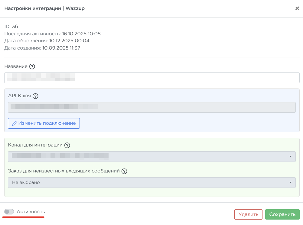 Включайте и отключайте существующие интеграции — нажмите шестерёнку, переведите ползунок Активность в нужное положение и нажмите Сохранить
