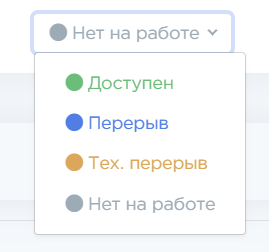 Тех. перерыв — используйте этот вариант только по запросу администратора или службы поддержки для проведения технических работ. Время в этом статусе не засчитывается в рабочую смену.