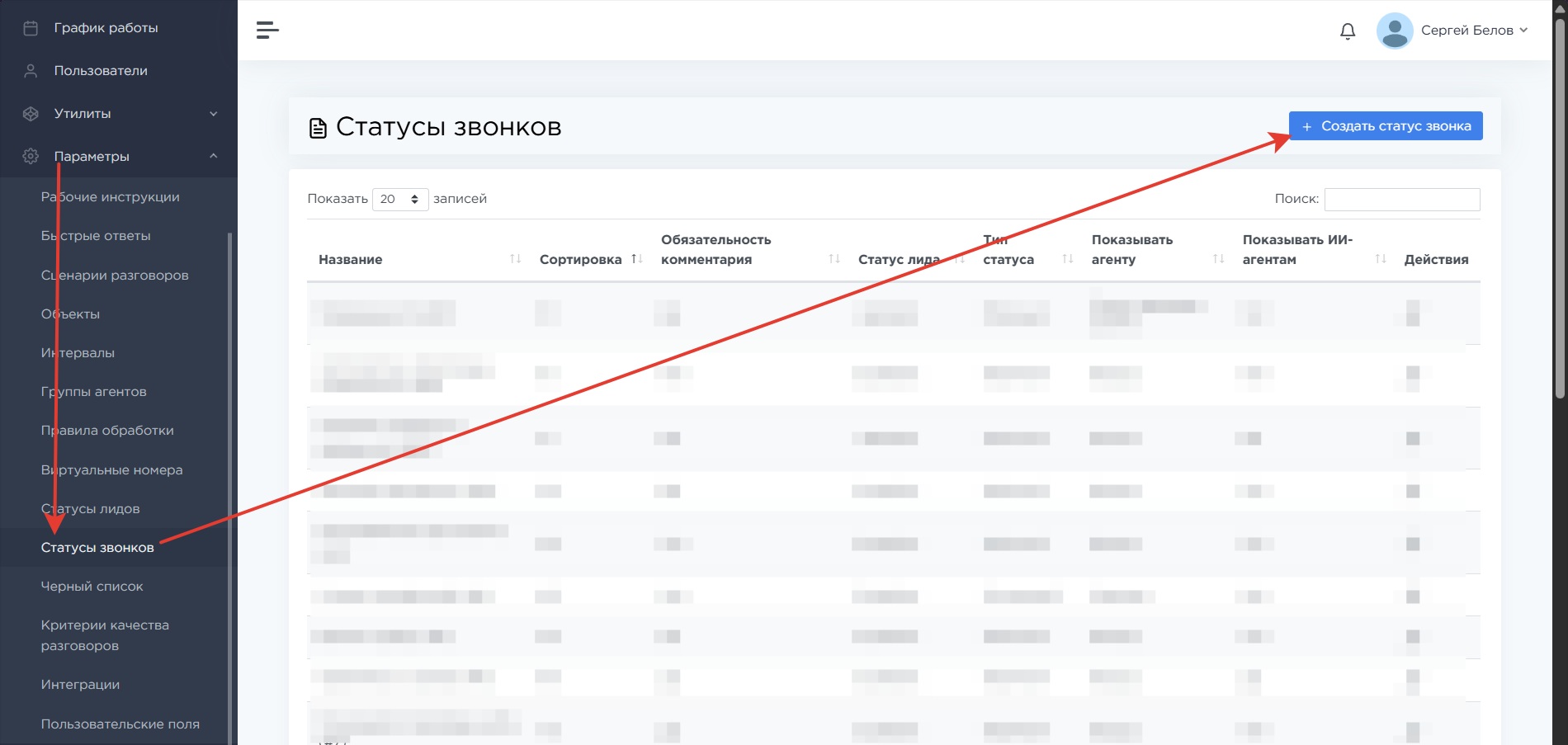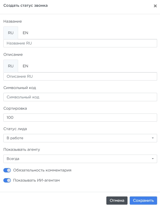 - Видимость ИИ-агентам — включите, чтобы ИИ-агент мог выбрать этот статус для звонка.