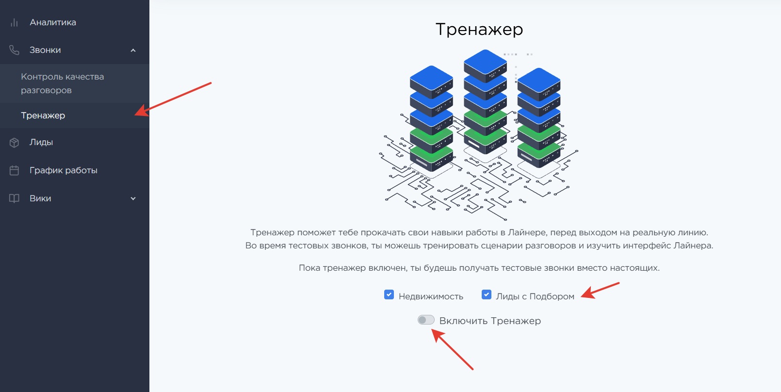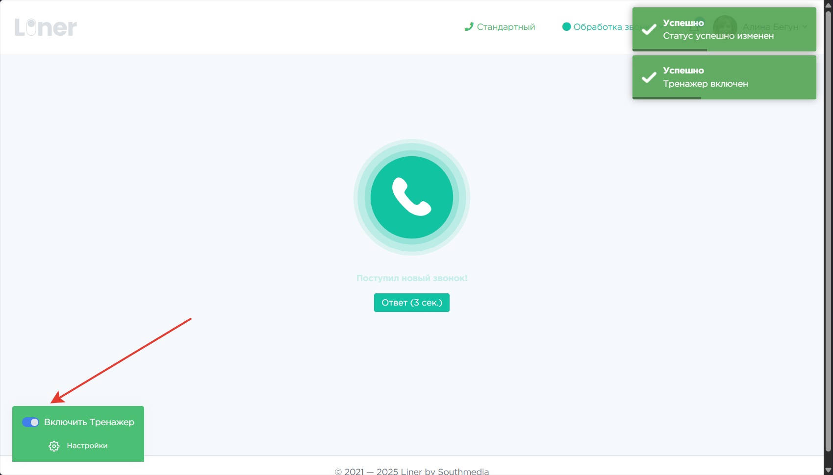 Оператор может включить себе Тренажёр самостоятельно. Для этого: