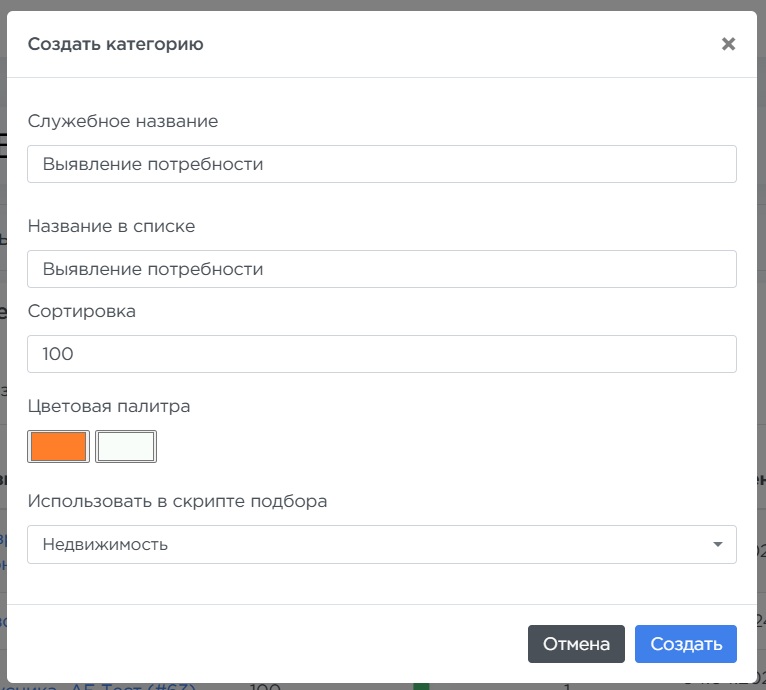 Служебное название и название в списке — укажите название категории, например, название этапа продажи.
